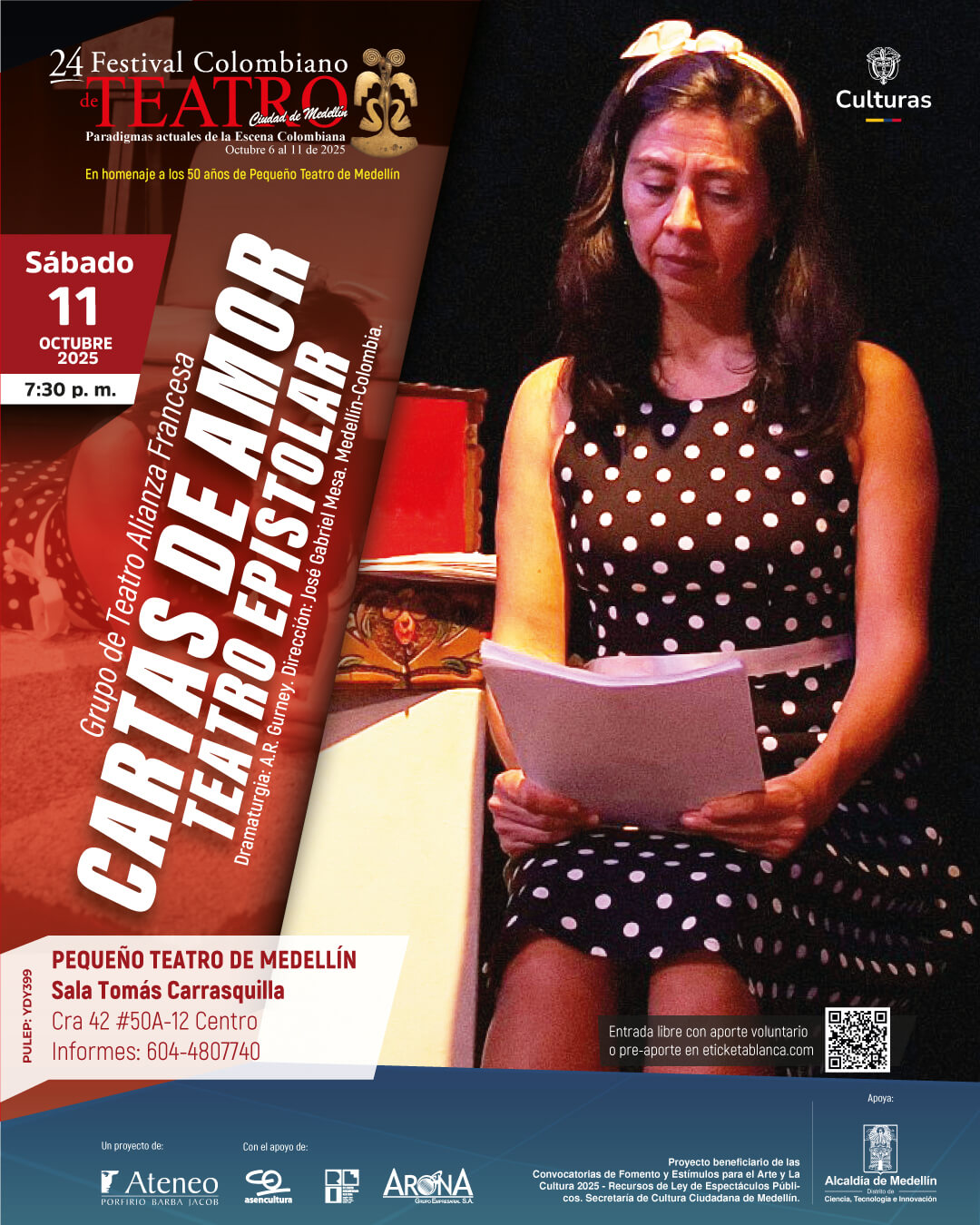 BOLETERÍA: Aporte voluntario en el teatro o https://tickets.eticketablanca.com/event/24-festival-colombiano-de-teatro-ciudad-de-medel-vh079t?eventId=68c5d1291bdad6878ef98199